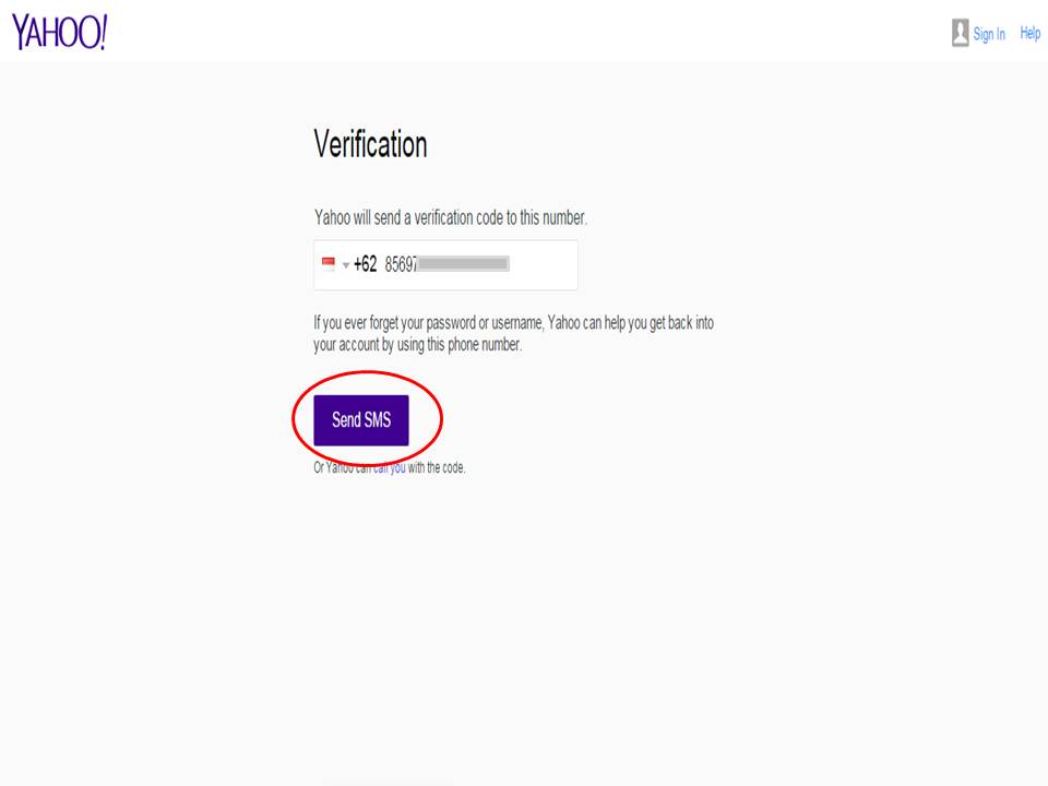 Ini dalah halaman untu verifikasi melalui sms,anda tinggal klik tombol "SEND SMS" Yahoo akan mengirimkan kode verifikasi pada nomor telpon yang tadi anda masukan ketika mendaftar. Jadi pastikan nomor telpon yang anda masukan berada di dekat anda.