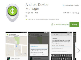 Namun jika memang pada handphone anda belum terpasang Android Device Manager anda bisa dengan mudah mengunduhnya di Google Play Store.