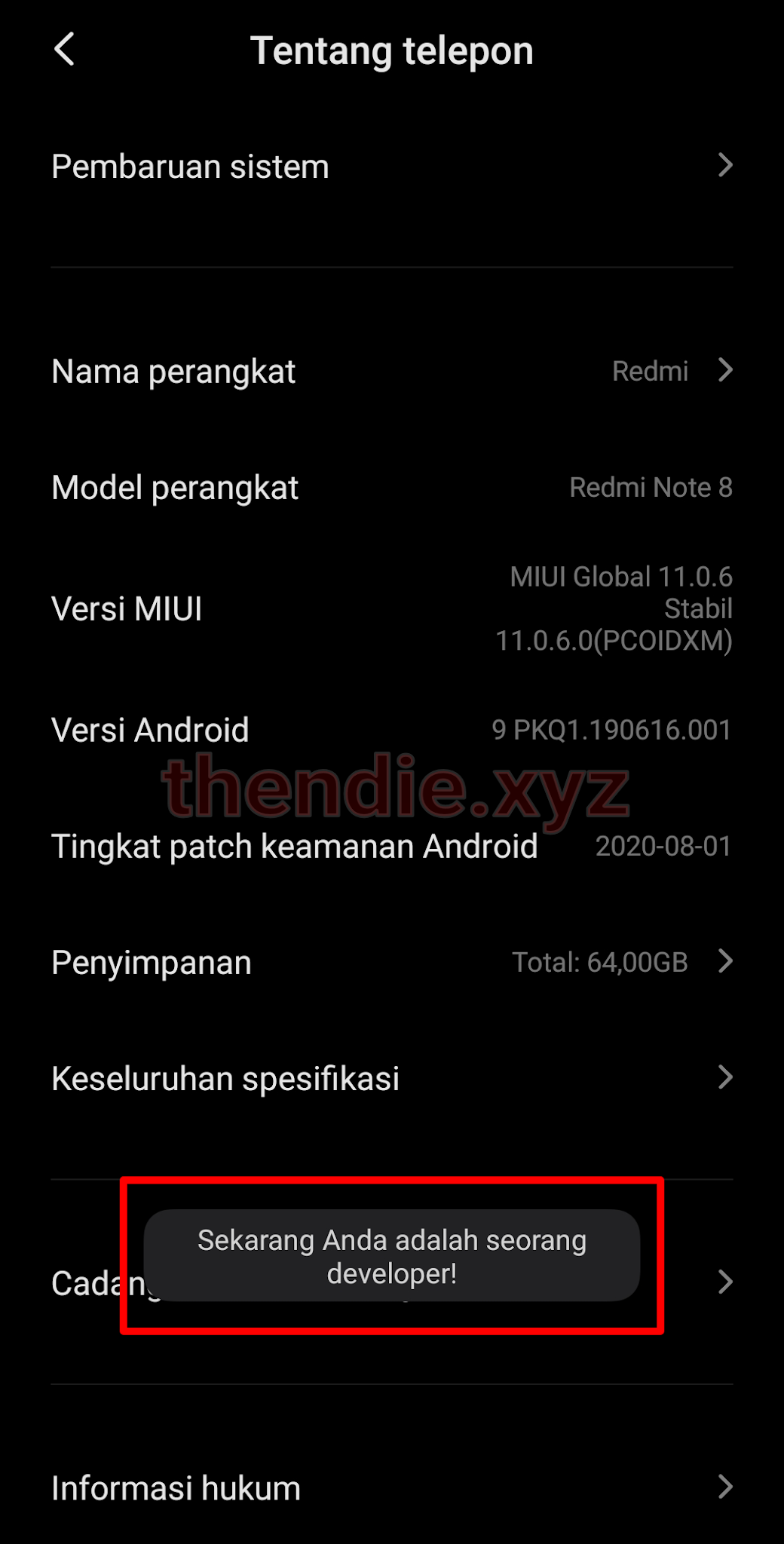 - Versi MIUI ( Tekan 7 kali pada menu tersebut. )